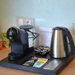 Our room had a handy kitchenette with an electric kettle, a fridge and glassware.